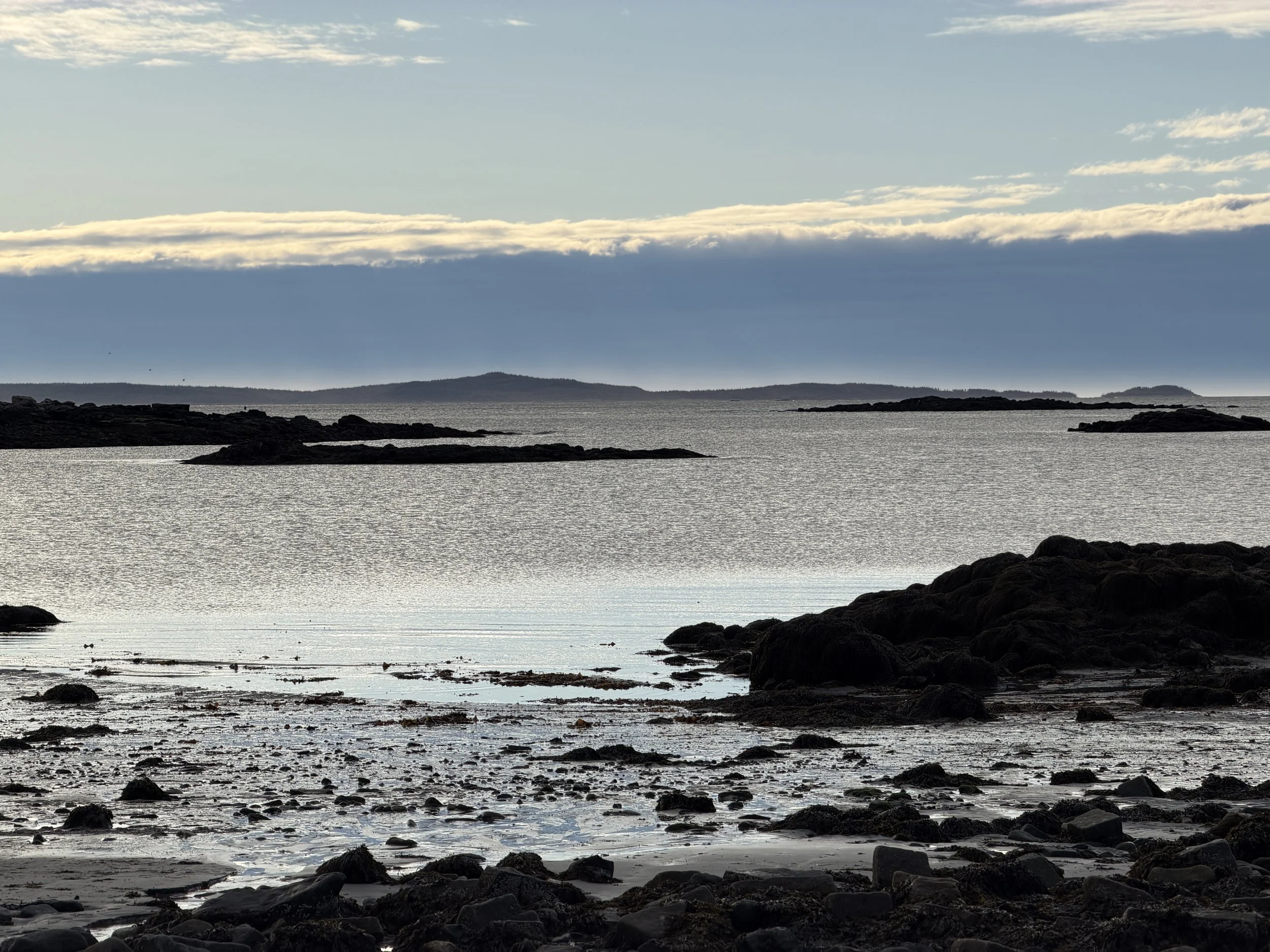 When I look at it, I think about how lucky I am to live here, where the granite meet the ocean and the light is always changing. I think about long walks along the shoreline, the sound of waves folding themselves back onto the rocks, and that deep blue band sitting quietly at the edge of the world.